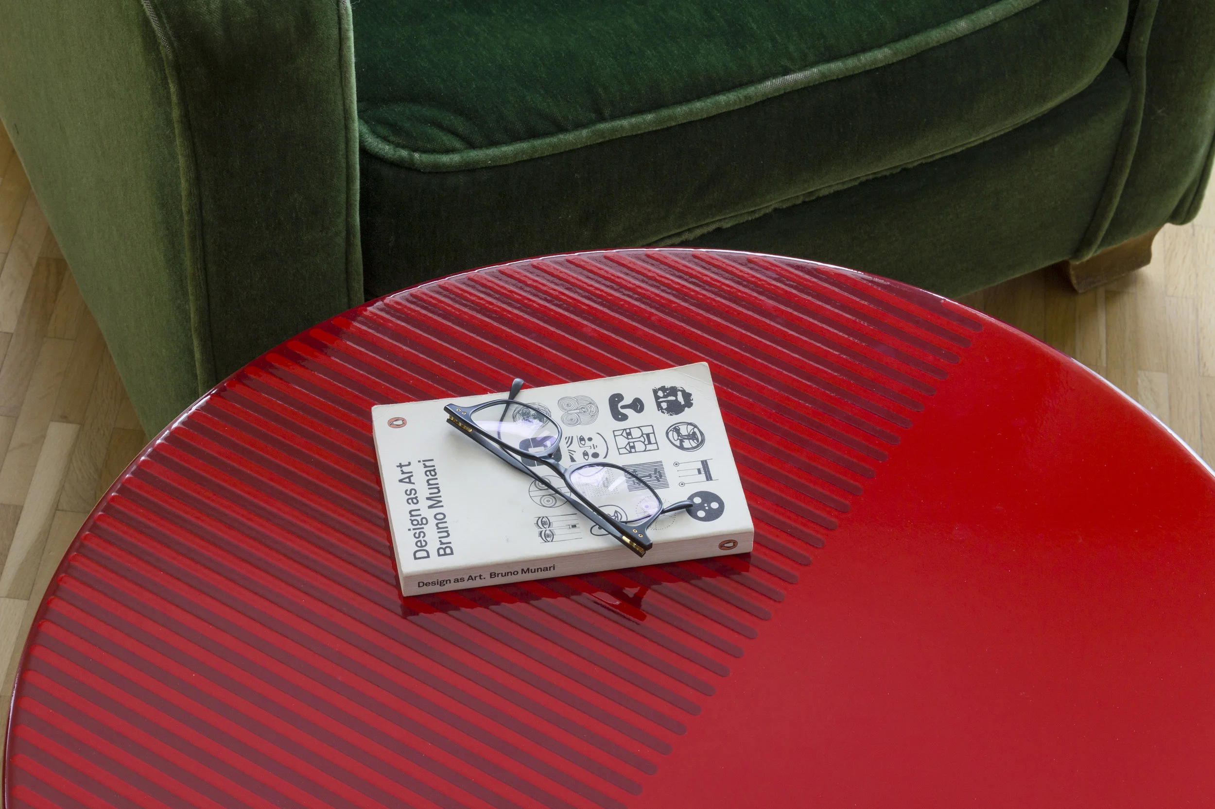 Thanks to its mineral pigments, that do not discolor under the influence of the ultraviolet radiation, as well as its multiple choices of colors and graphics, this object will be able to adapt itself both to your internal and external spaces. As to the thin aluminium powder coated table legs, with a propellers look, they bring a subtle touch of lightness and movement, while accentuating the delicate fineness of the enamelled plate.